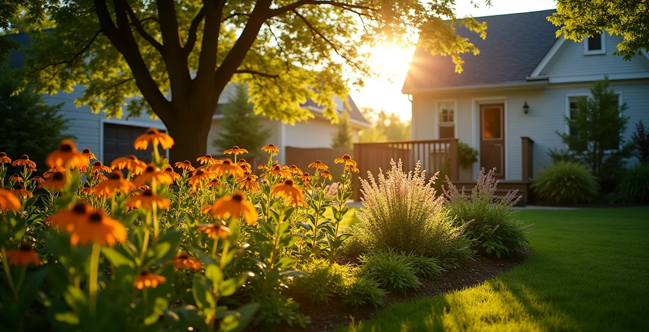Une fois que vous avez identifié les zones de votre terrain recevant six heures ou plus de lumière directe, vous avez localisé votre plus grand capital soleil. Ces zones, souvent considérées comme les plus faciles, sont en réalité des environnements exigeants. Le soleil intense, surtout celui de l’après-midi, peut brûler les feuillages délicats et assécher rapidement le sol. Planter n’importe quoi ici est une recette pour l’échec. La clé est de choisir des végétaux qui ont évolué pour non seulement tolérer, mais pour véritablement s’épanouir sous cette radiation intense.